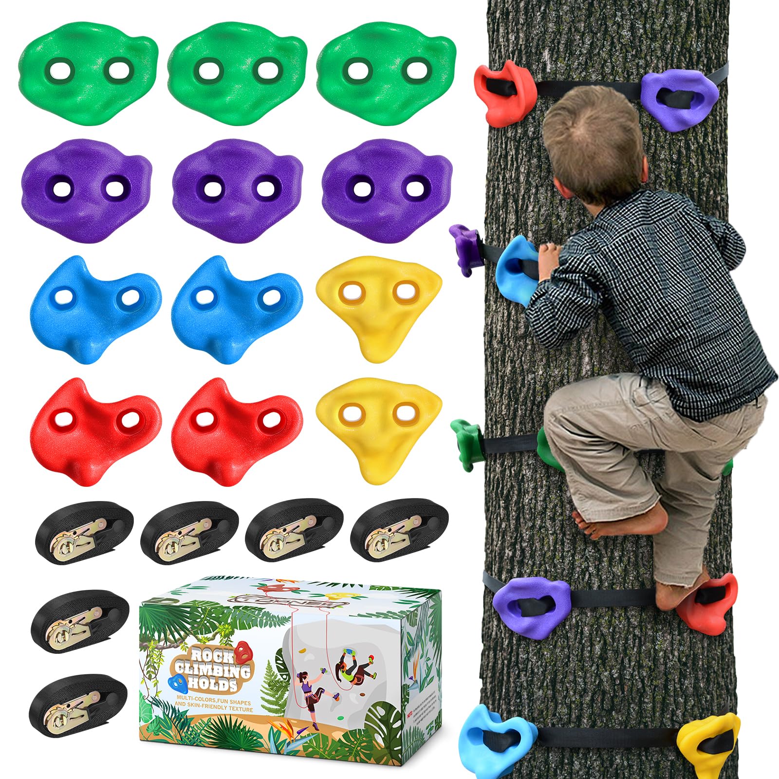 TOPNEW Ninja Tree Climbing Holds – 12 Rock Grips with 6 Straps