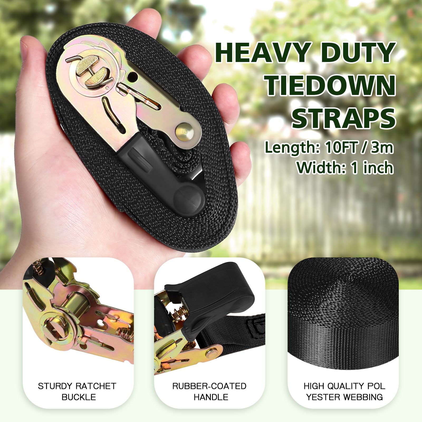 - 6 ratchet tie-down straps (10 ft each) for secure installation